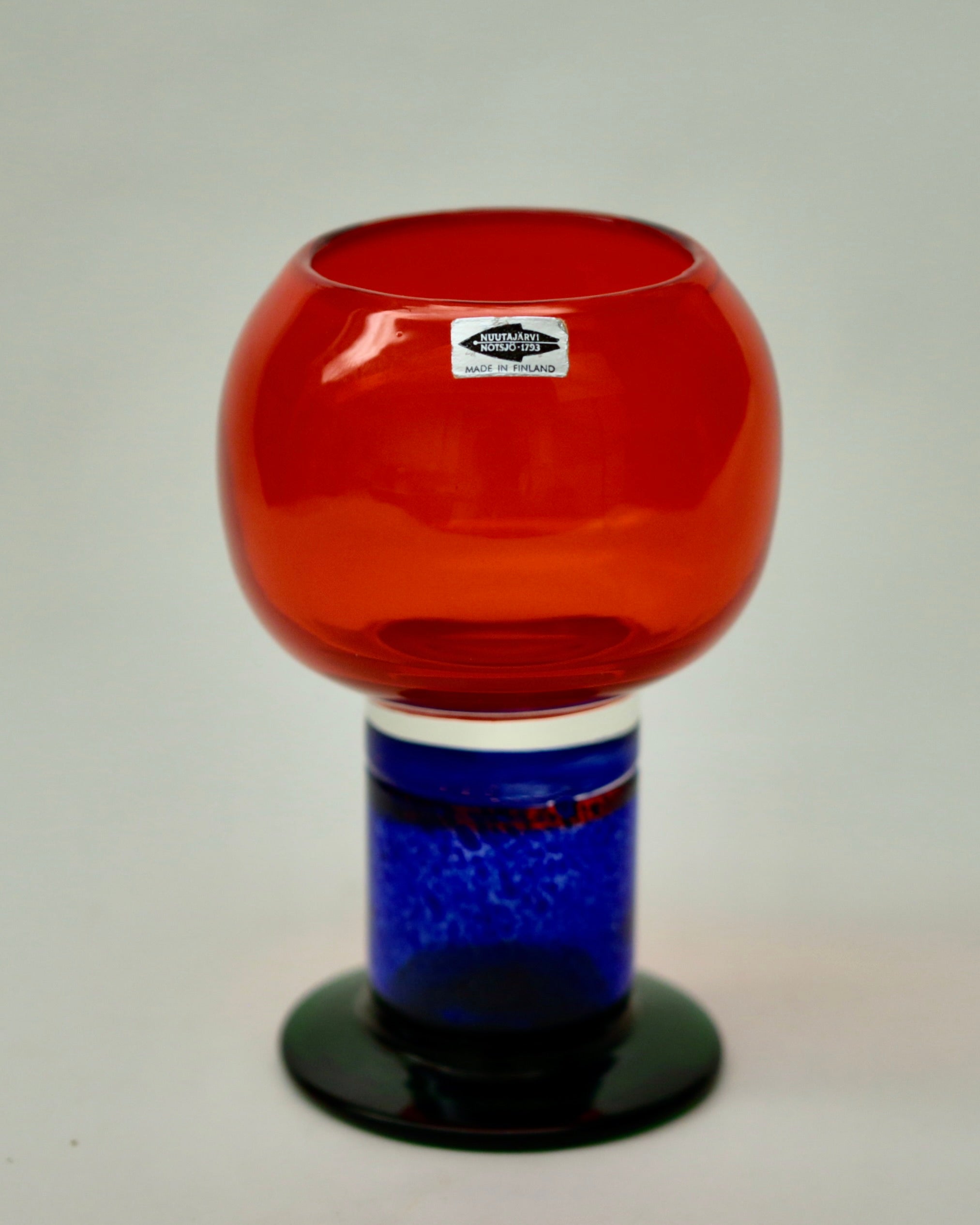 Pyörittäen puhallettua lasia, driivattu, punainen malja, jalka sininen ja jalkalaatta vihreä
